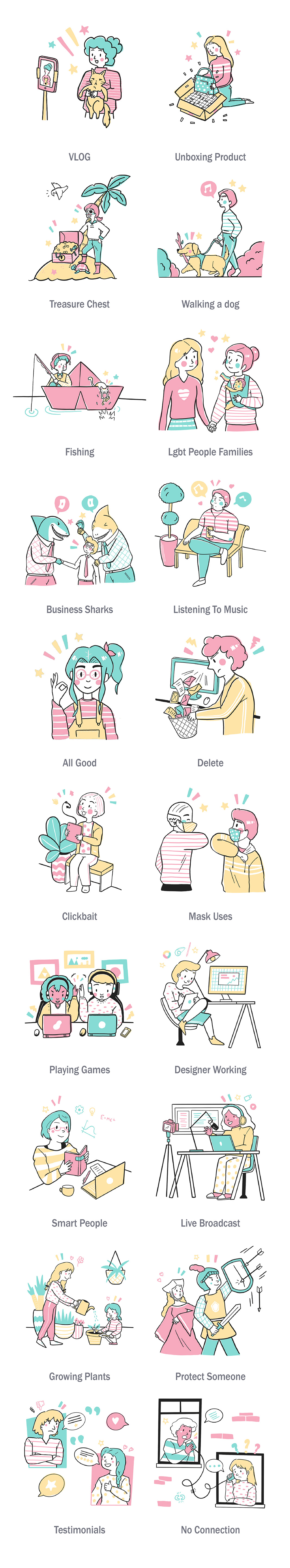 For this project, I worked with Webalys to create cute and fun illustrations based on their unique style, colour palette, and different themes. Software used: Procreate.
