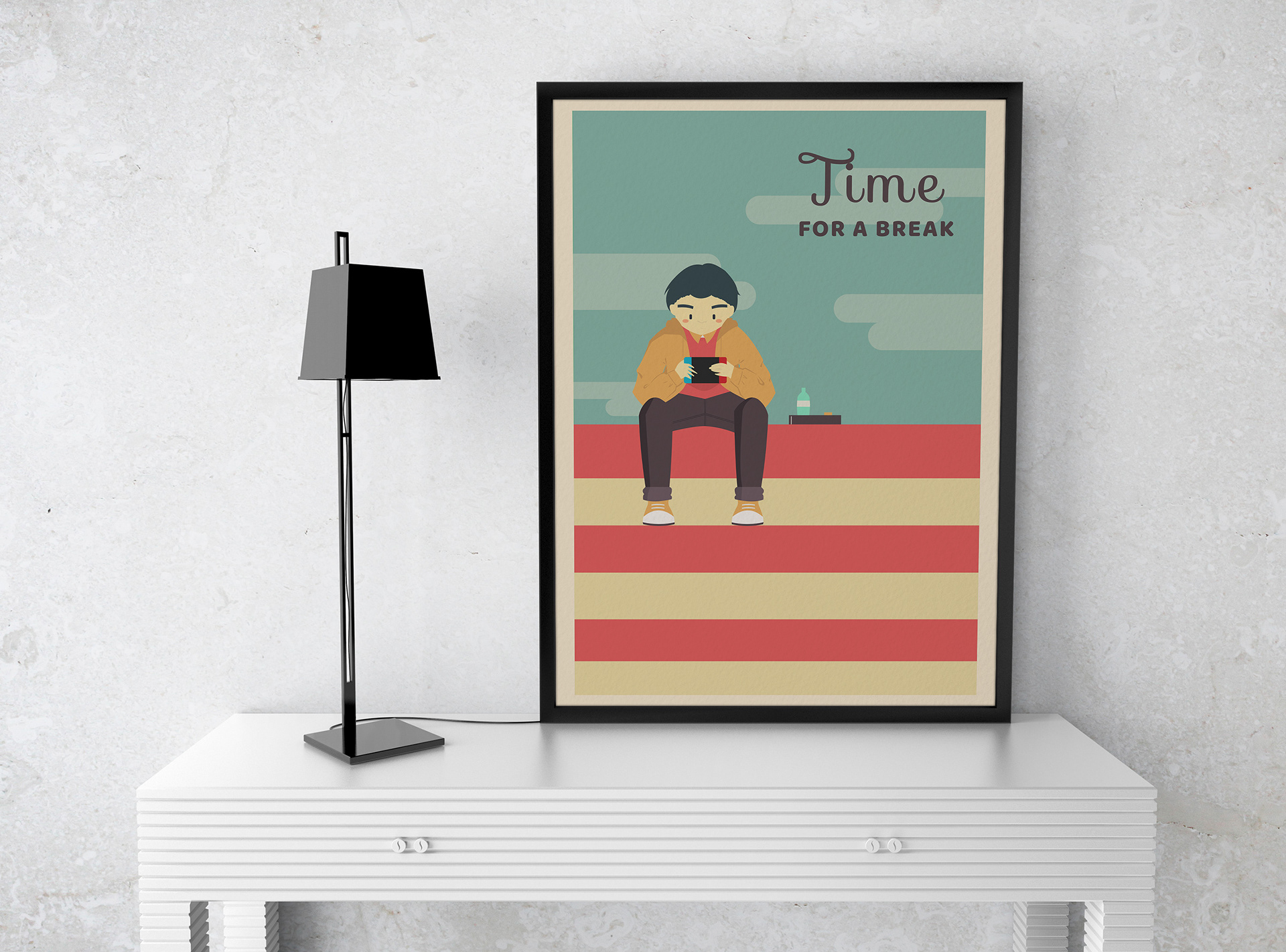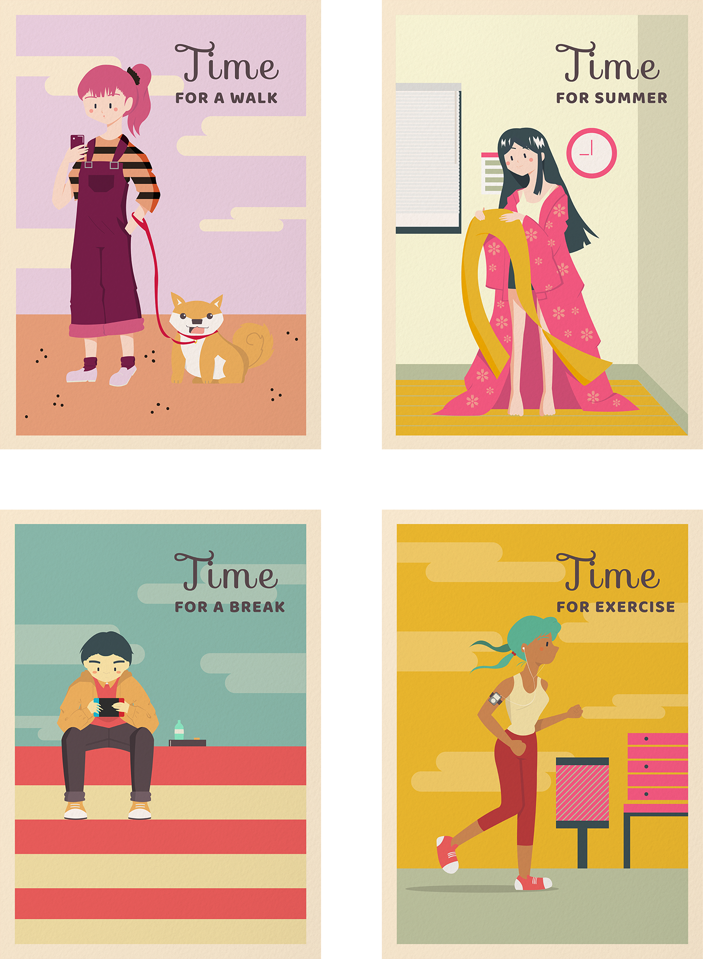 Self-directed project. A collection of posters with vector illustrations using vintage colours, entitled "Time for".